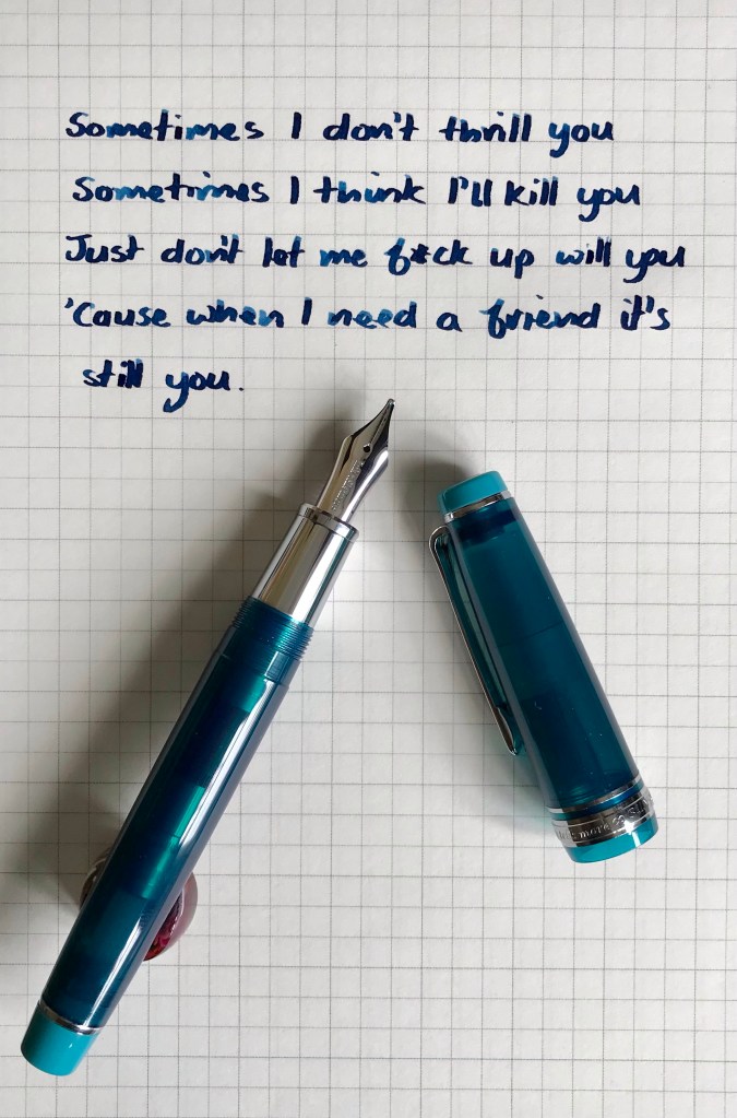 One of my pen purchases (Bungubox Fujiyama Blue) and some Dinosaur Jr lyrics that sum up how me and stationery have been getting along